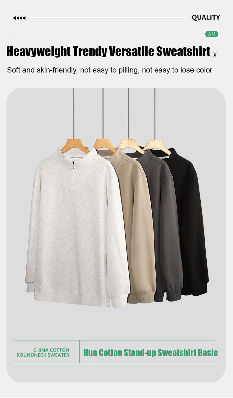 Fashionable Stand Collar Half Zip Chinese Cotton Sweatshirt