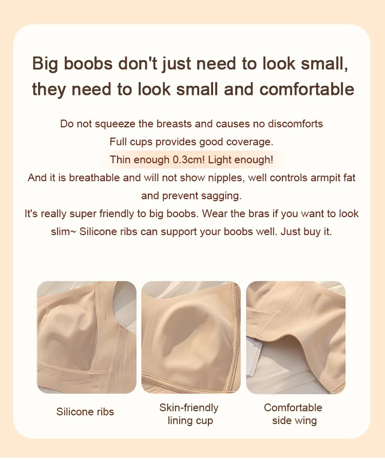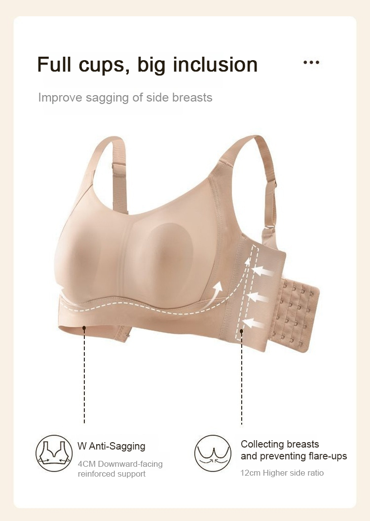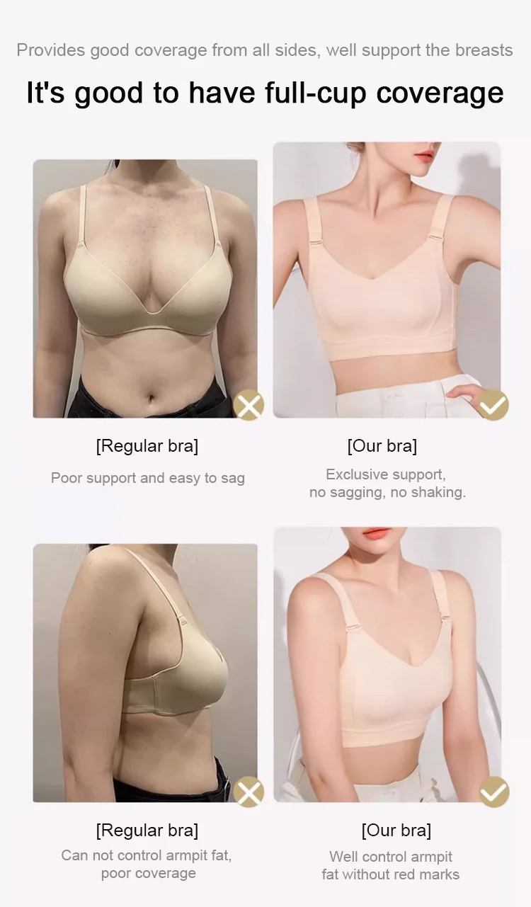Seamless wire-free full-cup fat-locking bra